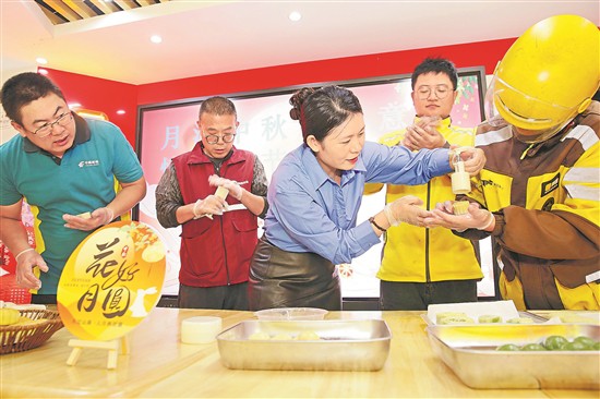 9月25日,江蘇省連云港市連云區(qū)總工會聯(lián)合東園社區(qū)工會,開展了“月滿中秋‘新’意暖 情融佳節(jié)暖意添”活動,現(xiàn)場為22名生活困難的外賣送餐員、快遞員、貨車司機、網(wǎng)絡(luò)主播等新就業(yè)形態(tài)勞動者送上慰問金和暖心大禮包,邀請他們參加法律維權(quán)知識講座、制作月餅和“投壺”“編花籃”等趣味文體活動,讓他們感受來自工會組織的關(guān)心和溫暖。工人日報通訊員 朱華南 顧笑 攝