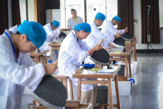 切制考場上,鍘刀、片刀與藥材整齊排列,裁判令下,選手們手起刀落,中藥材瞬間化作均勻飲片?!半m然平時也用機(jī)器切片,但是‘手藝活’不能丟?!眹幖瘓F(tuán)中聯(lián)藥業(yè)有限公司選手李文德賽后坦言,大賽提供了難得的學(xué)習(xí)交流機(jī)會。
