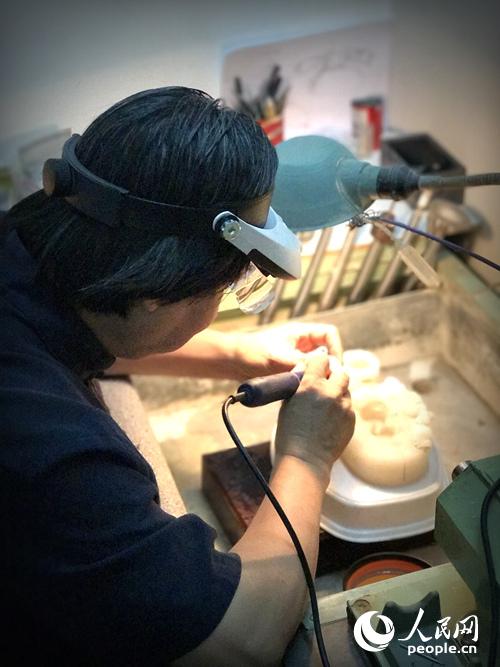 李克生在工作室雕玉。王醒/攝