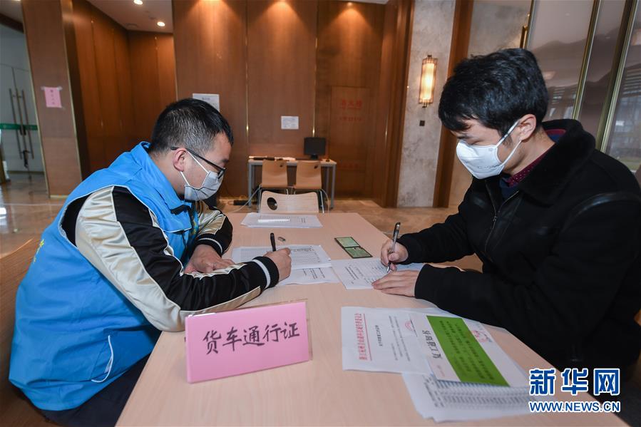 2月24日,杭州臨安區(qū)總工會的工作人員在幫助青山湖科技城的企業(yè)辦理貨車通行證。