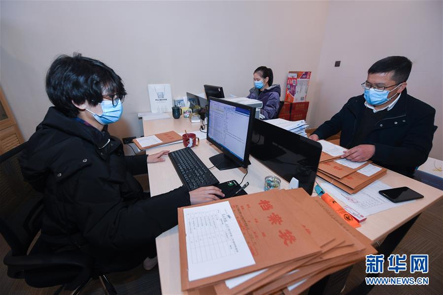 2月24日,杭州臨安區(qū)青山湖科技城工會的工作人員在加緊整理企業(yè)復工資料。 新華社記者 徐昱 攝