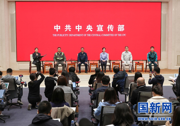 中共中央宣傳部于2021年4月29日上午10時舉行中外記者見面會,請新時期工人黨員代表圍繞“弘揚勞模精神、勞動精神、工匠精神”與中外記者見面交流。