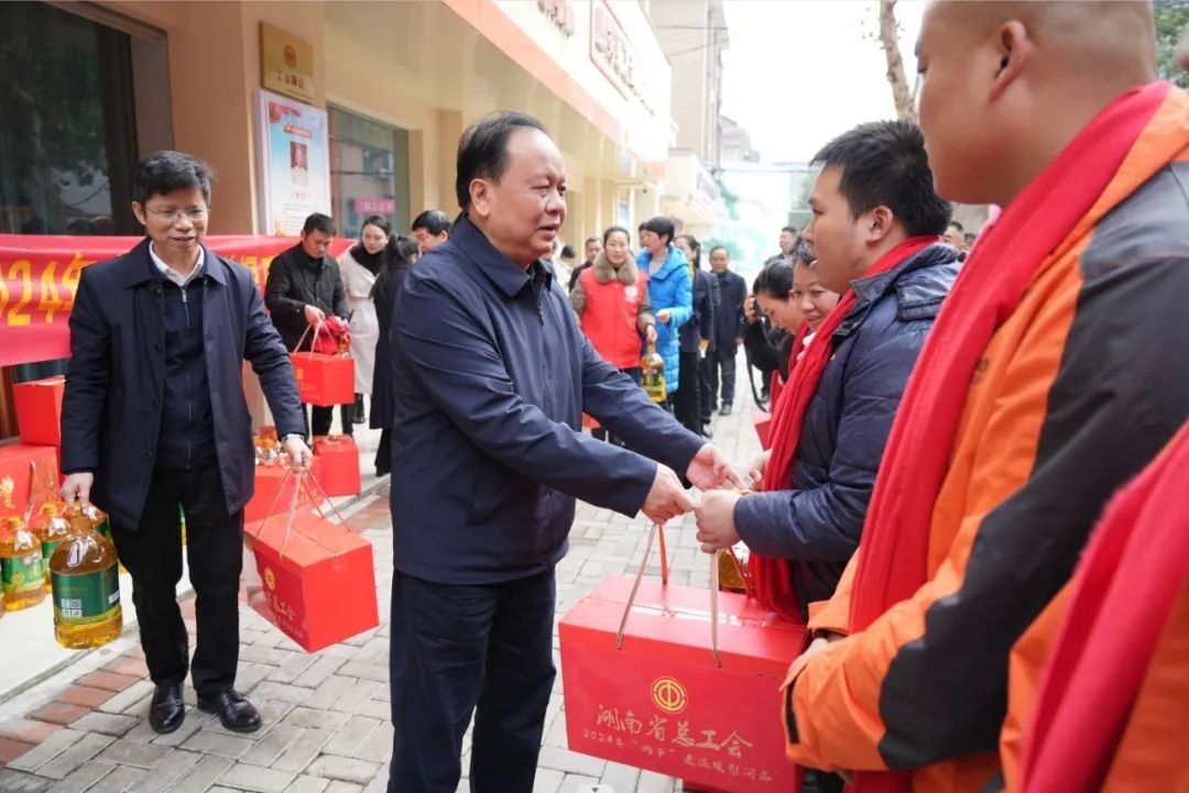 1月9日至10日,湖南省人大常委會副主任、省總工會主席周農(nóng)率慰問團到邵陽、婁底兩市開展送溫暖活動,把黨和政府的關(guān)懷、工會組織的溫暖及時送到廣大職工群眾的心坎上。由此,2024年全省工會送溫暖活動正式啟動。