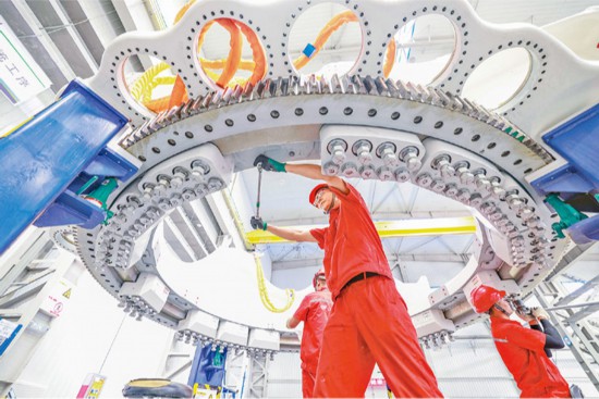 黨的二十屆三中全會(huì)強(qiáng)調(diào)要建設(shè)一流產(chǎn)業(yè)技術(shù)工人隊(duì)伍。產(chǎn)業(yè)工人是工人階級(jí)的主體力量,各級(jí)工會(huì)要更好團(tuán)結(jié)動(dòng)員廣大職工為進(jìn)一步全面深化改革、推進(jìn)中國式現(xiàn)代化作貢獻(xiàn)。圖為2024年7月23日,河北省隆化縣一家風(fēng)電設(shè)備企業(yè)的工人在車間工作。 新華社發(fā) 李秀清/攝