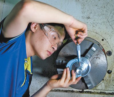 最近5年,數(shù)控技術(shù)學(xué)院有12人次在全國性技能競賽上拿到前五的名次,并因此進(jìn)入北京航天三院、上海航天精密機(jī)械研究所等單位就業(yè)!拔业哪繕(biāo)是到四川綿陽的中國工程物理研究院工作。”鄭江宇說。