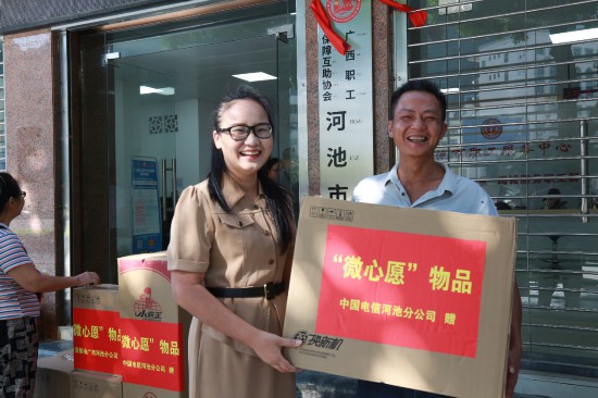 活動(dòng)現(xiàn)場(chǎng),市總工會(huì)與相關(guān)企業(yè)領(lǐng)導(dǎo)為困難職工送上了由中國(guó)移動(dòng)廣西公司河池分公司工會(huì)、中國(guó)電信河池分公司工會(huì)、中國(guó)建設(shè)銀行股份有限公司河池分行工會(huì)購(gòu)買的“微心愿”物資,接到這份“暖人心”的禮物,職工們臉上洋溢出了幸福的笑容。