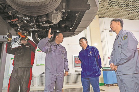 10月16日,盧仁峰(右二)在內(nèi)蒙古自治區(qū)扎蘭屯職業(yè)學(xué)院實訓(xùn)教室與學(xué)生交流。