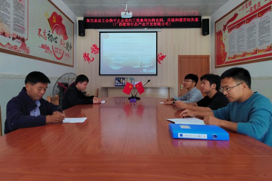 10月25日,廣西東蘭縣總工會工資集體協(xié)商指導(dǎo)小組工作人員,走進廣西敏翔生態(tài)產(chǎn)業(yè)開發(fā)有限公司、東蘭縣東成礦業(yè)有限公司,與兩家公司的相關(guān)負責人順利簽下工資集體協(xié)商合同。