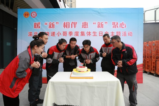 唱生日歌曲、切生日蛋糕、話生日愿景……近日,由重慶渝北區(qū)總工會、渝北職工幫扶基金會主辦的“暖‘新’相伴 惠‘新’聚心”—渝北區(qū)快遞小哥季度集體生日會在順豐速運重慶中央公園營業(yè)部溫情上演,20余名快遞員收獲了滿滿的驚喜與感動。