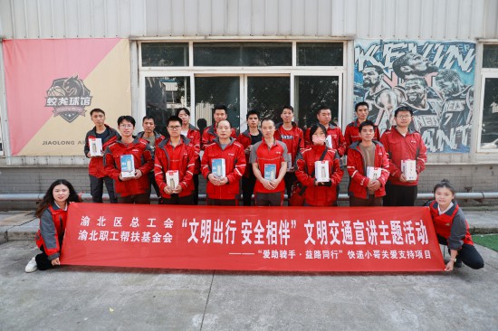 “雙十一”即將到來,快遞員們也即將進入一年中最忙碌的時段,為增強他們的交通安全意識,當天,渝北區(qū)總工會、渝北職工幫扶基金會還在京東快遞重慶回興營業(yè)部舉辦“文明出行 安全相伴”文明交通宣講主題活動。