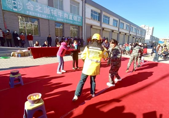 現(xiàn)場,80多名貨車司機(jī)、快遞小哥、外賣員、環(huán)衛(wèi)工人與工會干部同臺獻(xiàn)藝、游戲互動,將演出活動推向高潮?;顒咏Y(jié)束后,縣總工會還為大家送上了精心準(zhǔn)備的有保溫杯、棉手套、暖貼、“暖手寶”等冬季防寒保暖用品的“溫暖大禮包”……