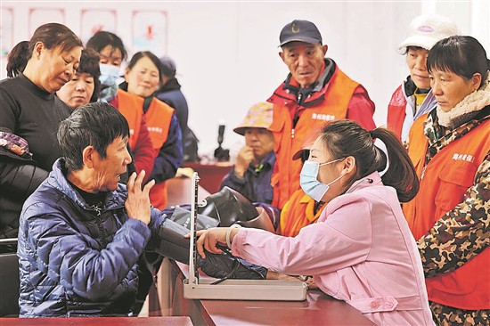 12月11日,江蘇省連云港市連云區(qū)海州灣街道總工會(huì)聯(lián)合連云區(qū)婦幼保健所,在營(yíng)山社區(qū)開展“暖心義診 守護(hù)健康”活動(dòng)。醫(yī)務(wù)人員為環(huán)衛(wèi)工人量血壓、測(cè)血糖,進(jìn)行健康檢查,指導(dǎo)正確用藥,普及冬季養(yǎng)生知識(shí),讓他們?cè)诩议T口享受到貼心、周到、便利的診療服務(wù)。本報(bào)通訊員 朱華南 李敏藝 攝