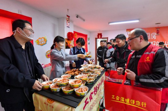 天津順豐速遞有限公司工會設(shè)立了“移動廚房”,解決快遞員們因工作繁忙而無法按時用餐的問題。時值用餐時間,蹲點(diǎn)組與企業(yè)工會共同幫廚,為快遞員們送上熱氣騰騰的飯菜,讓大家在暢享美食、輕松交流的過程中收獲幸福感。