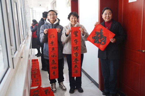 “市總工會每年都會來到八里村社區(qū)給我們居民群眾和環(huán)衛(wèi)工人送春聯(lián),紅紅的春聯(lián)和‘?!郑屛覀兏杏X到進(jìn)入過春節(jié)的氛圍了?!鄙鐓^(qū)環(huán)衛(wèi)工梁燕拿著剛寫好的春聯(lián)開心地說。