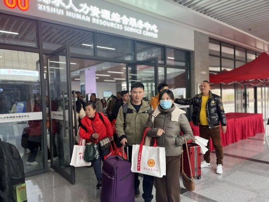 隨著春節(jié)假期結(jié)束,外出務(wù)工人員陸續(xù)踏上返崗之旅。2月5日一大早,湖北省浠水南站候車廳內(nèi)人聲鼎沸。來自浠水縣各鄉(xiāng)鎮(zhèn)的78名外出務(wù)工人員背著行李,在工作人員的引導(dǎo)下,等待即將抵達(dá)的G2705次專列,該列車將搭載他們前往深圳。
