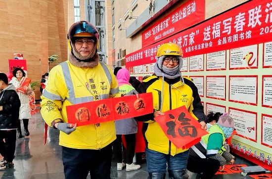 市縣區(qū)工會充分利用工會驛站、職工書屋、文體中心等陣地,聯(lián)合市書法家協(xié)會舉辦2025年“送萬福、進(jìn)萬家”書法公益活動,組織書法愛好者現(xiàn)場揮毫潑墨,書寫春聯(lián)和“?!弊?,贈送給前來休息的戶外勞動者、職工群眾和社區(qū)居民,并深入金化集團(tuán)有限公司、金昌啟程環(huán)衛(wèi)有限公司、甘肅甕?;び邢挢?zé)任公司等5家企事業(yè)單位,現(xiàn)場為一線職工和新就業(yè)形態(tài)勞動者書寫春聯(lián)、福字3000余幅,裝點(diǎn)了職工群眾節(jié)日文化生活。