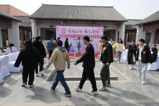 緊接著,一系列趣味游戲?qū)⒒顒託夥胀葡蚋叱?。第一個游戲“桃花朵朵開”,所有嘉賓圍成大圈,在音樂聲中歡快走動。當(dāng)主持人喊出“桃花桃花朵朵開”,大家齊聲回應(yīng)“開幾朵?”隨后迅速按照指令人數(shù)抱團(tuán),落單或組隊(duì)錯誤的嘉賓雖被淘汰,卻也毫無懊惱,反而笑著進(jìn)行比心拍照,現(xiàn)場滿是歡聲笑語。這個游戲如同一劑良方,瞬間打破了陌生人之間的隔閡,拉近了彼此的距離。