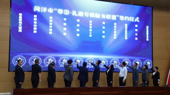 日前,山東省菏澤市總工會(huì)舉行“尊崇·禮遇勞模服務(wù)聯(lián)盟”啟動(dòng)儀式,菏澤機(jī)場(chǎng)、菏澤東站、菏澤文旅集團(tuán)等20家單位作為第一批聯(lián)盟單位現(xiàn)場(chǎng)簽約。