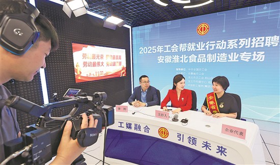 5月15日,安徽省淮北市“工會(huì)幫就業(yè)”行動(dòng)啟動(dòng),現(xiàn)場(chǎng)通過(guò)直播方式,向求職者發(fā)布就業(yè)崗位。