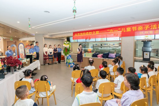 5月27日下午,中國(guó)鐵路上海局集團(tuán)有限公司杭州客運(yùn)段西子餐廳變身“兒童樂園”,30余組職工家庭在“火車俠的奇妙之旅”親子活動(dòng)中,通過鐵路安全科普、勞模精神體驗(yàn)和趣味游園,共度別樣兒童節(jié)。