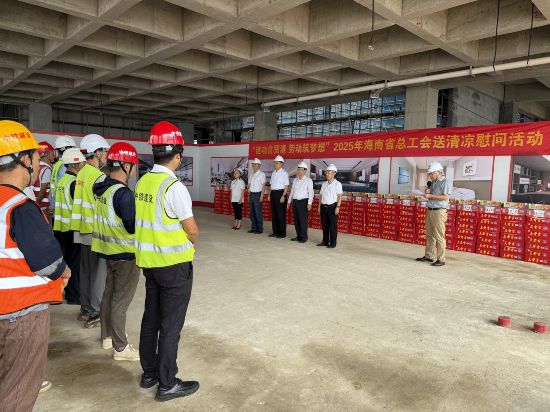 “謝謝工會的關(guān)心和慰問,高溫天氣我們雖然辛苦,但看到工會送來清涼,心里特別感動。”中鐵建設(shè)國家緊急醫(yī)學(xué)救援基地(海南)建設(shè)項(xiàng)目部防水工人卜凡賀告訴記者。