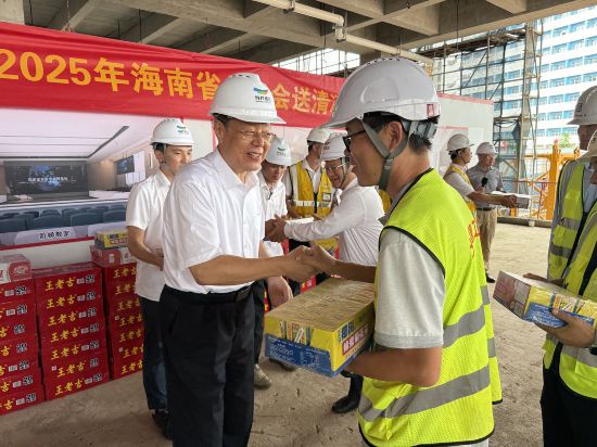 6月5日下午,海南省人大常委會副主任、省總工會主席閆希軍深入??谑薪瓥|新區(qū)國家緊急醫(yī)學(xué)救援基地(海南)項(xiàng)目施工現(xiàn)場,開展“建功自貿(mào)港·勞動筑夢想”2025年工會送清涼慰問活動,為高溫下奮戰(zhàn)在省重點(diǎn)工程一線的勞動者送去關(guān)懷?;顒庸不菁霸擁?xiàng)目及相鄰的海南醫(yī)學(xué)院桂林洋新校區(qū)項(xiàng)目約1550名職工,60名職工代表現(xiàn)場受贈。海南省總工會黨組書記、常務(wù)副主席賴泳文參加慰問活動。