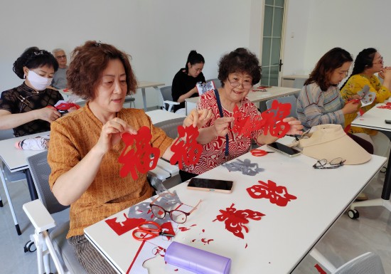 活動(dòng)現(xiàn)場(chǎng),李永波大師手持紅紙,剪刀如行云流水般游走,轉(zhuǎn)眼間一只栩栩如生的蝴蝶便振翅欲飛?!凹艏堉v究‘三分剪,七分巧’,要心靜、手穩(wěn)、眼準(zhǔn)?!彼贿吺痉叮贿厡⒓艏埶囆g(shù)千年的文化脈絡(luò)娓娓道來(lái)。學(xué)員們屏息凝神,跟隨著大師的指導(dǎo),在方寸紅紙間施展巧思。剪刀與紙張的沙沙聲此起彼伏,不一會(huì)兒,一只只靈動(dòng)的蝴蝶、一幅幅喜慶的“?!弊直阍趯W(xué)員們手中“綻放”。