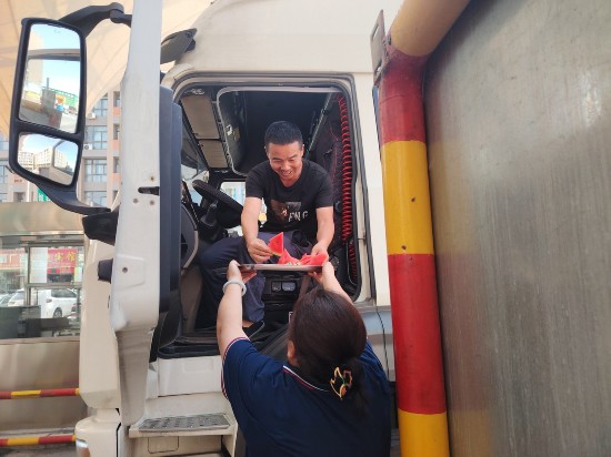 在閩寧鎮(zhèn)福寧村工會驛站舉辦的“工會送清涼防暑保安康”慰問活動現(xiàn)場,80名環(huán)衛(wèi)工人收到了工作人員精心準(zhǔn)備的礦泉水、酸奶、綠豆湯等防暑物資。與此同時,四季鮮批發(fā)市場工會驛站則為奔波忙碌的貨車司機送上清甜爽口的西瓜,用貼心舉措為戶外勞動者驅(qū)散暑熱,傳遞夏日里的關(guān)懷。