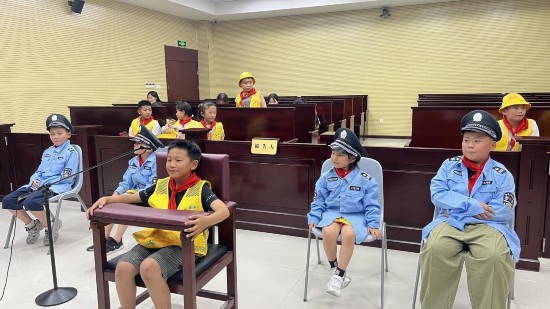 在備受期待的“模擬法庭”環(huán)節(jié),經(jīng)過(guò)現(xiàn)場(chǎng)指導(dǎo),好奇滿滿的萌娃穿上制服,化身“審判長(zhǎng)”“書(shū)記員”“原告人”“代理人”等,快速代入法庭訴訟角色。孩子們通過(guò)“角色扮演+情景模擬”沉浸式體驗(yàn)庭審流程,在莊嚴(yán)肅穆的“法庭”氛圍中,零距離感受到了法治力量。