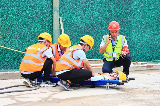 “有人中暑了!”深江機場東項目工區(qū)網格員劉晟的哨聲劃破熱浪,網格區(qū)內,一名電焊工張勁突感天旋地轉、踉蹌倒地,指令瞬間傳遍現(xiàn)場,“啟動預案。”警戒線拉起安全區(qū)域,救護組攜擔架飛奔而至,清涼的濕毛巾與礦泉水迅速覆蓋老張滾燙的額頭與脖頸。技術組同步排查周邊通風設備,確保每一絲涼風都抵達工人身旁?!拔覀冮_展高溫中暑應急演練,一方面是希望增強大家的防暑意識,為工友筑起生命的屏障,另一方面也有助于確保項目在安全穩(wěn)定的環(huán)境中順利推進?!痹擁椖堪踩撠熑吮硎?。