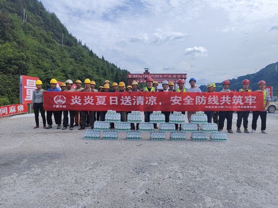 “冰鎮(zhèn)飲品來咯——”一陣清脆的推車聲劃破熱浪,中鐵六局路橋公司利咸項(xiàng)目部工會的工作人員推著滿載清涼物資的小車穿過施工現(xiàn)場,藍(lán)色保溫箱里的冰汽水正冒著絲絲白汽。木工梁在兵搶先接過一瓶擰開,“咕咚”一大口下肚,冰涼的氣泡順著喉嚨炸開,他仰起脖子長舒一口氣,喉結(jié)滾動著贊嘆:“哇,這口涼水下肚,瞬間從頭頂舒坦到腳心!”鋼筋工李朱捏著藿香正氣水的小玻璃瓶,對著太陽舉了舉:“這可是保命水啊,去年工地上就靠它撐過高溫天,項(xiàng)目部想得太周到了!”
