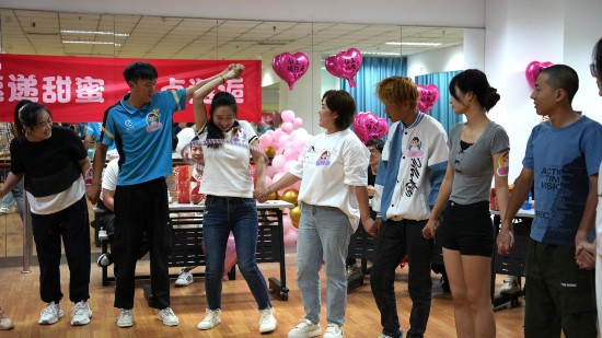 “我們?yōu)榇蠹覝?zhǔn)備了早飯,咱們先吃早飯,再找緣分,就當(dāng)是朋友聚會!”主持人親切的開場白,讓現(xiàn)場緊繃的氣氛瞬間輕松起來。大家三三兩兩圍坐,隨后,主持人將參與者分為3組,開啟傳遞呼啦圈、動作接龍、紙杯傳水破冰等小游戲。在“身體傳呼啦圈”環(huán)節(jié),三組青年手拉手圍成圈,在不借助雙手的情況下傳遞呼啦圈。在“往左一點”“慢點轉(zhuǎn)”的輕聲提示和默契配合中,彼此之間的陌生感悄然消融。來自真誠超市的導(dǎo)購員小張帶著她的閨蜜團(tuán)結(jié)伴參加活動,她們互相打氣,積極參與每個環(huán)節(jié),活動現(xiàn)場充斥著她們爽朗的笑聲?;顒又鞒秩颂匾庠诿枯営螒蚝笤O(shè)置“自由”換組環(huán)節(jié),讓青年們能主動接觸心儀對象,進(jìn)一步加深了解。
