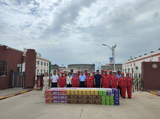 8月6日,慰問組首站抵達西北銷售公司西固油庫,為油品儲運崗位職工發(fā)放各種“甘味”農產品、飲料等清涼禮包,并調研產業(yè)工人隊伍建設、基層勞模工作室作用發(fā)揮、職業(yè)技能培訓等工作。同時,公司工會積極落實為員工辦實事要求,為各單位采購并發(fā)放葛根汁、杏皮茶等防暑降溫慰問品,及時配備發(fā)放透氣舒適的短袖防靜電工作服,切實提升了作業(yè)舒適度。