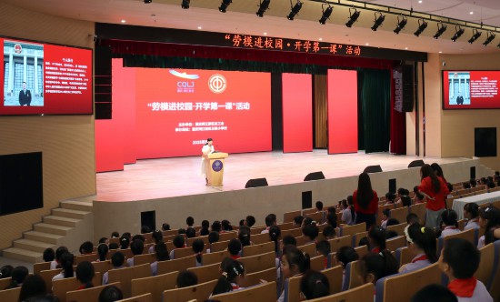 “愛崗敬業(yè)、爭創(chuàng)一流、艱苦奮斗、勇于創(chuàng)新、淡泊名利、甘于奉獻(xiàn)。”9月1日,鏗鏘有力的誦讀聲回蕩在重慶兩江新區(qū)云錦小學(xué)校園里。當(dāng)天,兩江新區(qū)總工會在此開展了一場生動的“勞模進(jìn)校園·開學(xué)第一課”主題活動。學(xué)校1400余名師生齊聚報(bào)告廳,共同聆聽由全國抗震救災(zāi)模范、中國新聞獎(jiǎng)獲得者何熠帶來的宣講。