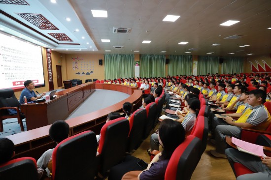 2024年自治區(qū)先進(jìn)工作者、百色高級(jí)中學(xué)黨委書記、正高級(jí)教師肖福流走上講臺(tái),用樸實(shí)的語(yǔ)言分享了自己從一名普通教師成長(zhǎng)為教育戰(zhàn)線先進(jìn)代表的親身經(jīng)歷。他鼓勵(lì)同學(xué)們,“要做一個(gè)有理想、肯堅(jiān)持、敢創(chuàng)新的人,既要敢于承認(rèn)差距,更要擁有不甘人后的志氣,以頑強(qiáng)的拼搏實(shí)現(xiàn)奮起直追?!?/p>